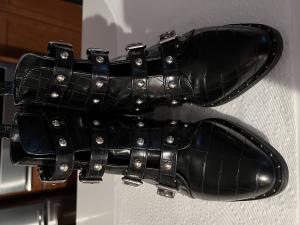 블랙 크록 패턴 스트랩 앵클부츠