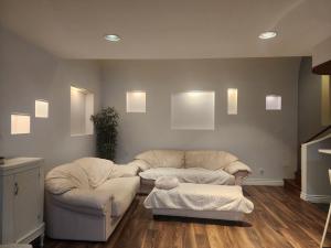 3인용, 2인용, 1인용 소파 팝니다. 3인용 2인용 소파는 사진에서 보는바와 같이 베이지 색이고, 1인용소파는 검은색 가죽 소파입니다. (사진은 내일 올리겠습니다. 모두 합쳐 50불에 팝니다. 감사합니다.