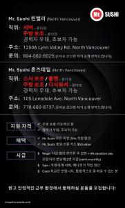 놀스벤쿠버 스시집 단기알바 캐쉬잡 급구