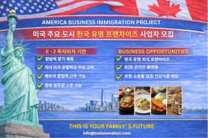 미국 주요도시 유명 프랜차이즈 사업자 모집 (AMERICA BUSINESS IMMIGRATION PROJECT) " 당사는 한국 대표 프랜차이즈 브랜드의 미국 시장 확장을 주도하고 있으며, 2026년도 부터는 캐나다 거주자를 위한 미국 프리미엄 프랜차이즈 사업 기회를 제공 해 드립니다 ” A. 미국 전역 프랜차이즈 사업 프로그램 1. 사업 · ...